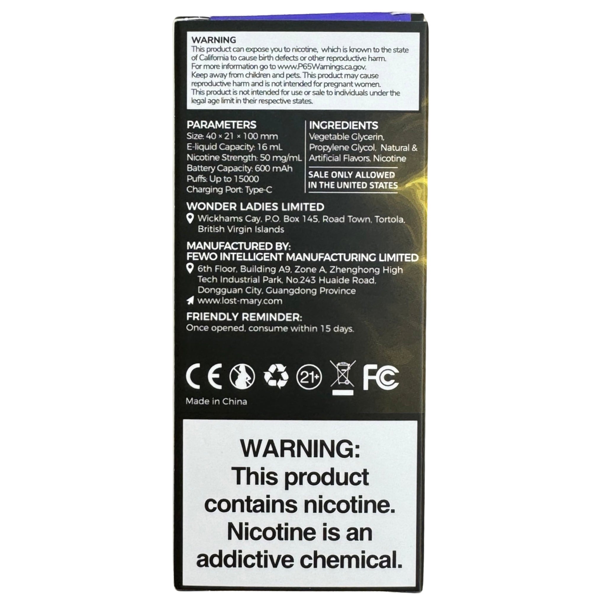 - Puffs per Device: Get ready for a whopping 15,000 puffs per device, ensuring long-lasting satisfaction without compromising flavor or performance.
