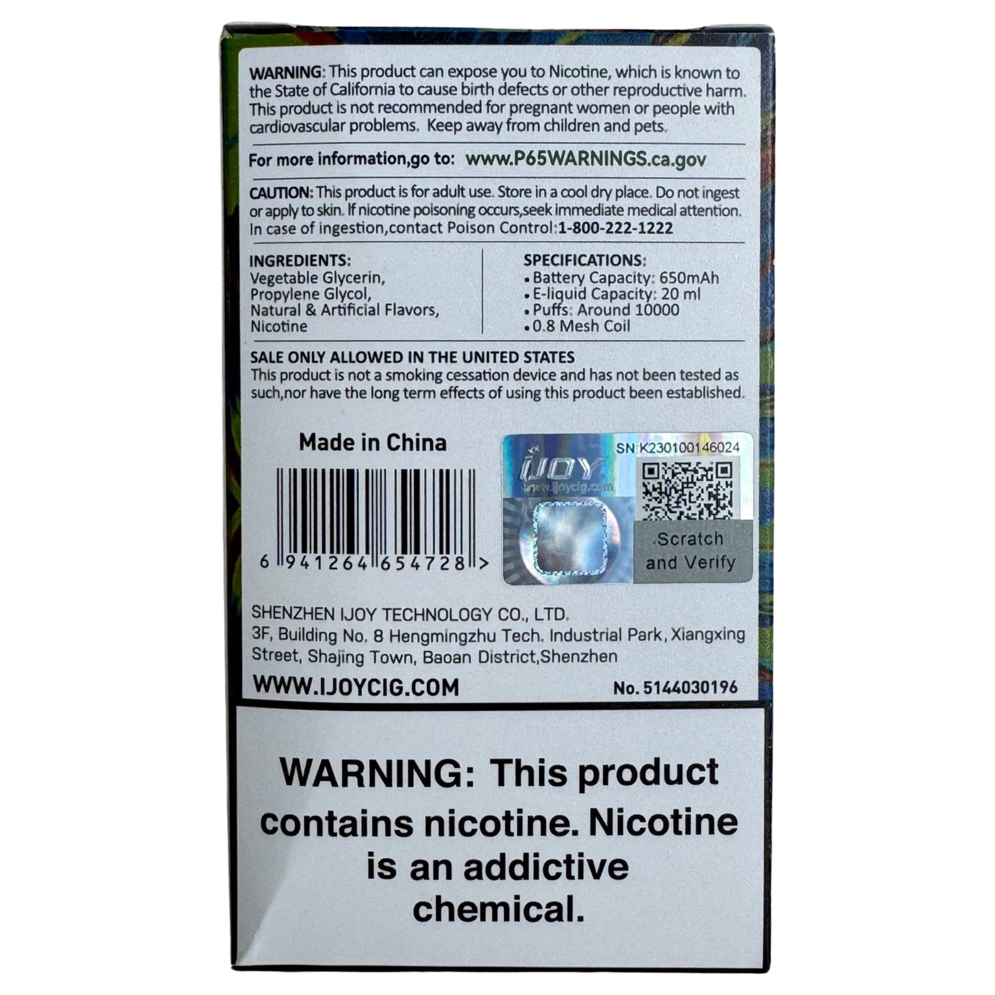 - Long-lasting Enjoyment: Say goodbye to frequent refills and battery anxiety. With a pre-filled e-liquid capacity of 20ml, equivalent to 10,000 puffs, the Blueberry Watermelon - IJOY Bar SD10000 ensures uninterrupted vaping pleasure for days. Whether you're lounging at home or on the go, you can count on this device to keep up with your vaping lifestyle.