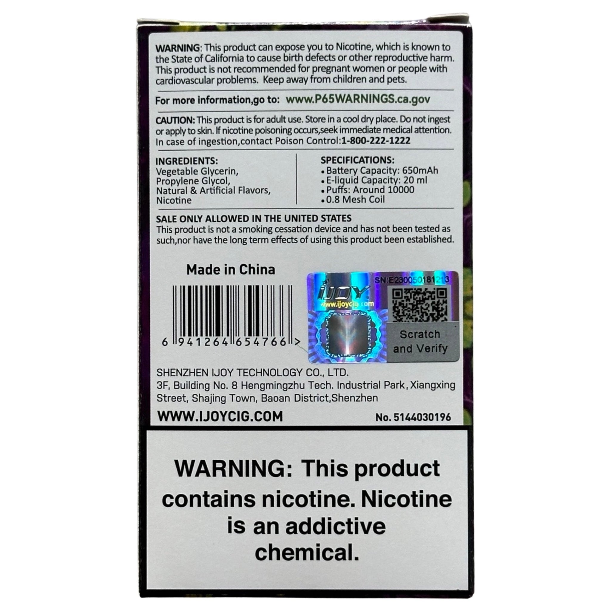 Impressively, the IJOY Bar 10000 is capable of delivering up to 10,000 puffs. This extensive puff capacity is facilitated by a large 20 ml e-liquid tank, ensuring prolonged vaping enjoyment without the need for frequent refilling.