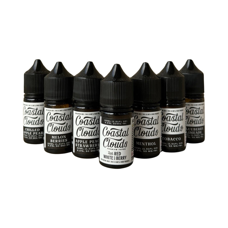 Coastal Clouds offers a unique vaping experience with their 50 mg nicotine salt vape juice in a convenient 30 ml bottle. This product stands out in the market due to its balanced VG (Vegetable Glycerin) and PG (Propylene Glycol) ratio of 50% each. The use of nicotine salts ensures a smoother throat hit, making it ideal for both new and experienced vapers. This e-juice is manufactured in the USA, ensuring high-quality standards.