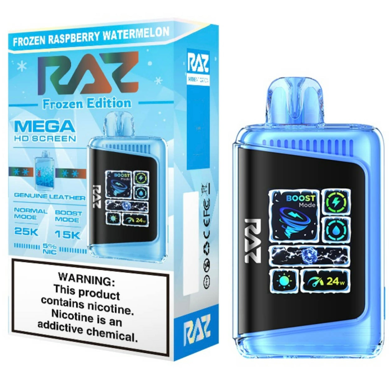 In conclusion, the RAZ DC25000 Disposable Vape with its Frozen Raspberry Watermelon flavor is a must-try for anyone looking for a premium vaping experience. Its long-lasting battery, sleek design, and incredible flavor profile make it a standout in the disposable vape market. Plus, the added convenience of Boost Mode and a built-in screen means this vape doesn’t just taste good—it’s also a joy to use.
