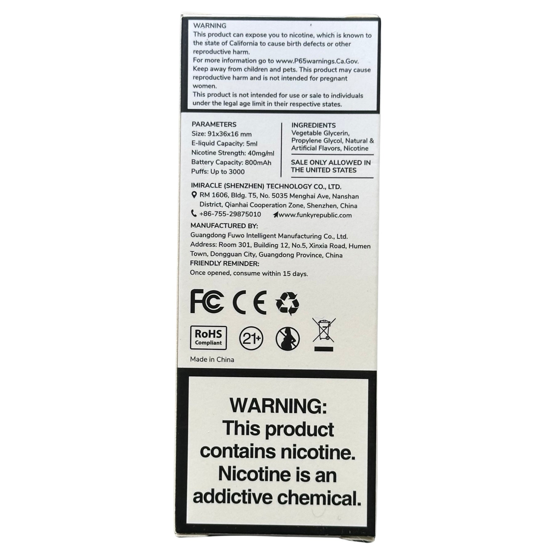 Funky Republic Fi3000 Berry Chill is more than a flavor; it's a refreshing experience, a journey through chilled, berry-rich landscapes. It’s an invitation to feel the cool breeze of flavors, to savor the rich, colorful tapestry of berry notes, and to find refreshment and satisfaction in every puff. Immerse yourself in Berry Chill and let the cool, fruity breezes whisk you away on a flavorful odyssey!