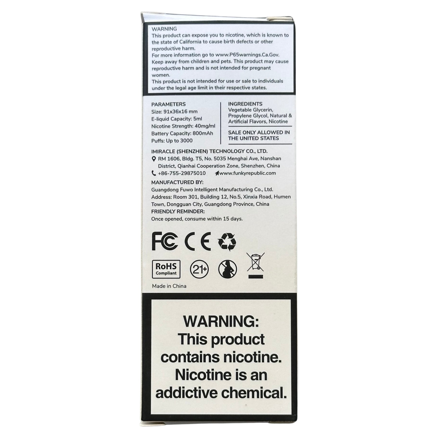Encased in the innovative Fi3000 by Funky Republic, Miami Mint guarantees a sophisticated, smooth journey to the realms of freshness. This sleek, modern device is your elegant gateway to a world of crisp, refreshing flavor whispers!