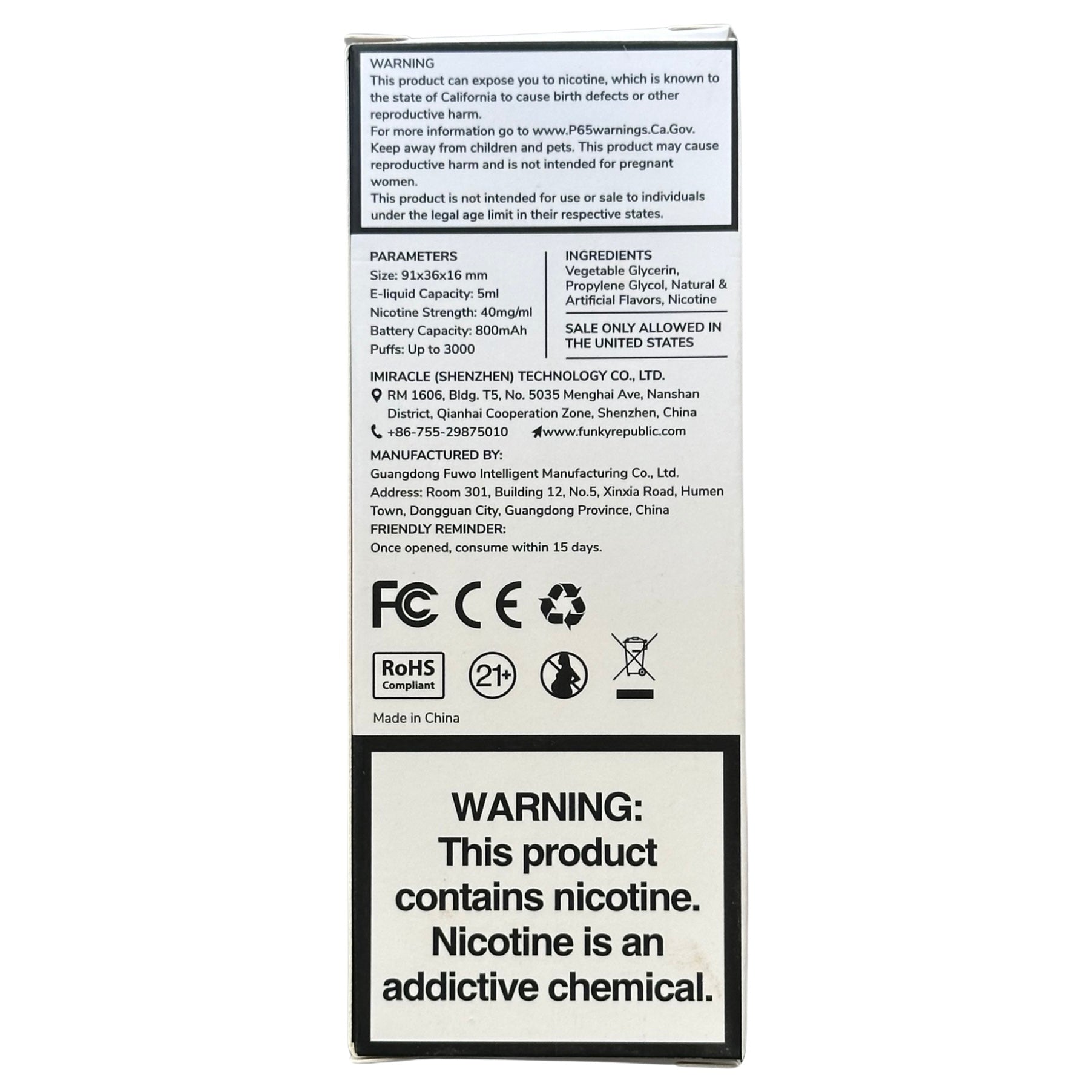 Encased in the stylish and innovative Fi3000 by Funky Republic, Watermelon Ice promises a smooth, delightful flavor voyage. The device is your sleek companion to the flavor oasis, ensuring each draw is a step into refreshing, harmonious bliss!