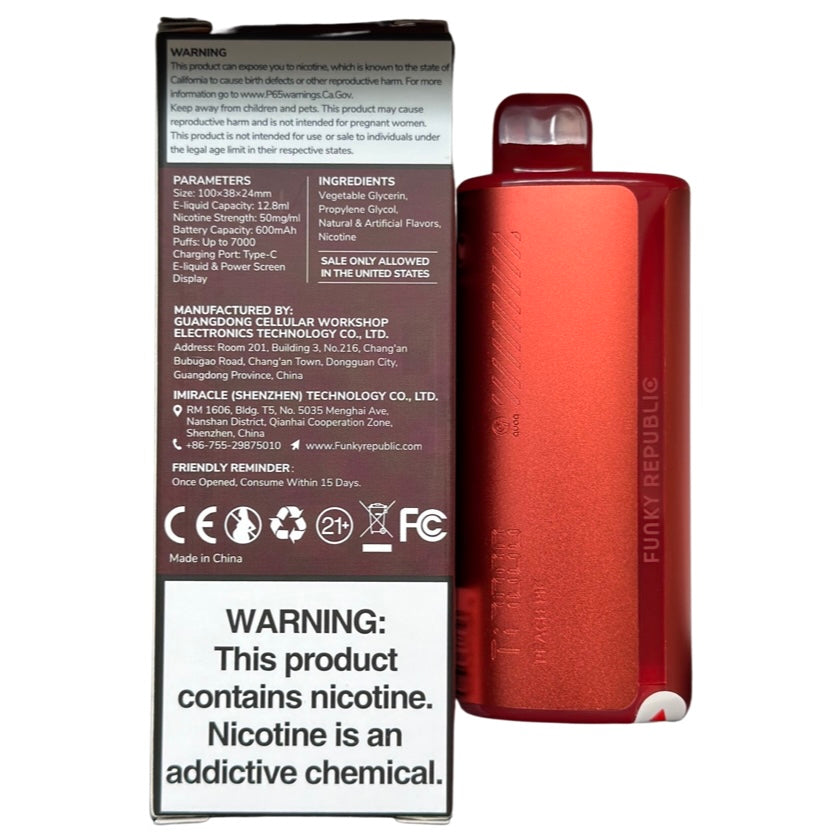 4. Quality: Funky Republic ensures premium quality in every Elf Bar TI7000 Peach Pie. Each vape is filled with high-quality e-liquid, delivering consistent flavor and satisfying clouds with every puff.