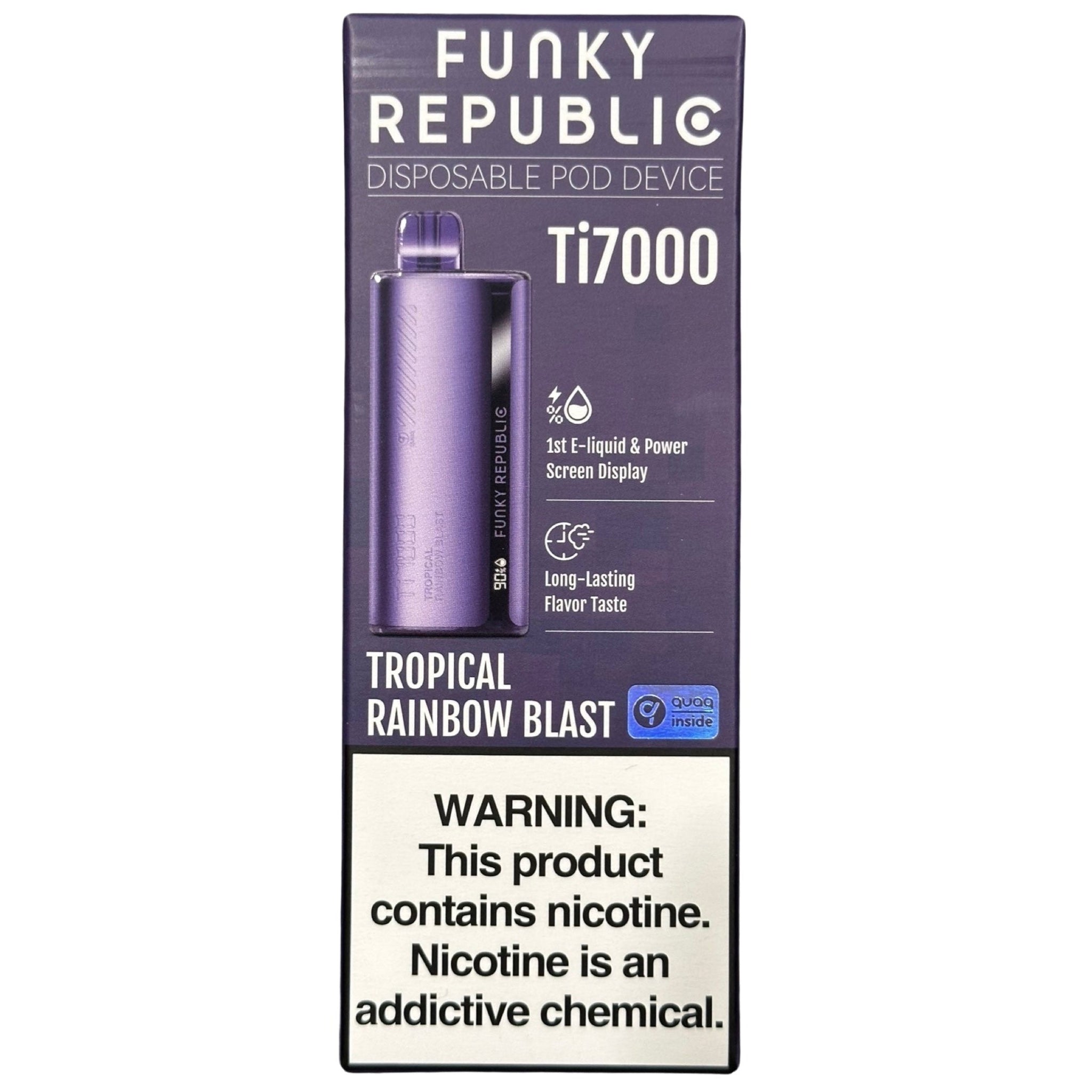 In a world flooded with options, the Funky Republic Ti7000 in Tropical Rainbow Blast stands out as a true-tasting adventure. It's not just a vape; it's a flavor journey that transports you to a tropical haven with every inhale. So, why settle for the ordinary when you can have the extraordinary? Unleash the bomb flavor, savor the taste, and let the Tropical Rainbow Blast redefine your vaping expectations. Your taste buds will thank you.