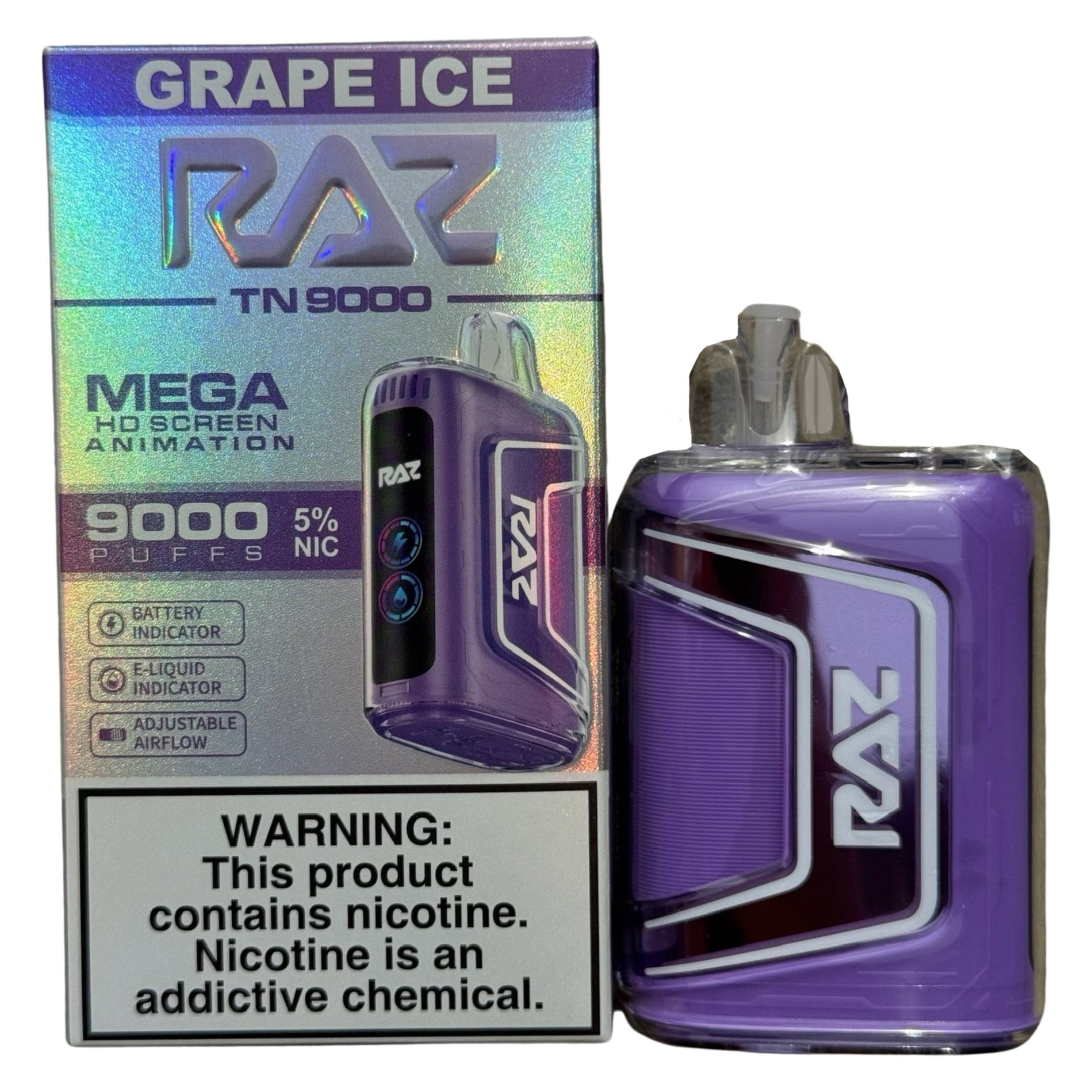 It's the kind of flavor that lingers in the air long after you've exhaled, leaving a tantalizing trail that beckons you to take another puff. Whether you're a seasoned vaper or just dipping your toes into the world of vaping, Grape Ice - RAZ TN9000 is sure to delight your senses and keep you coming back for more.