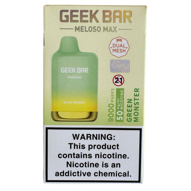 Refrain from settling for mediocre vaping experiences when you can elevate your journey with Green Monster - Geek Bar Meloso Max 9000. From its irresistible flavor profile to its superior performance, this vape device is a game-changer in the vaping world. So why wait? Grab yours today and immerse yourself in a flavor frenzy like never before.