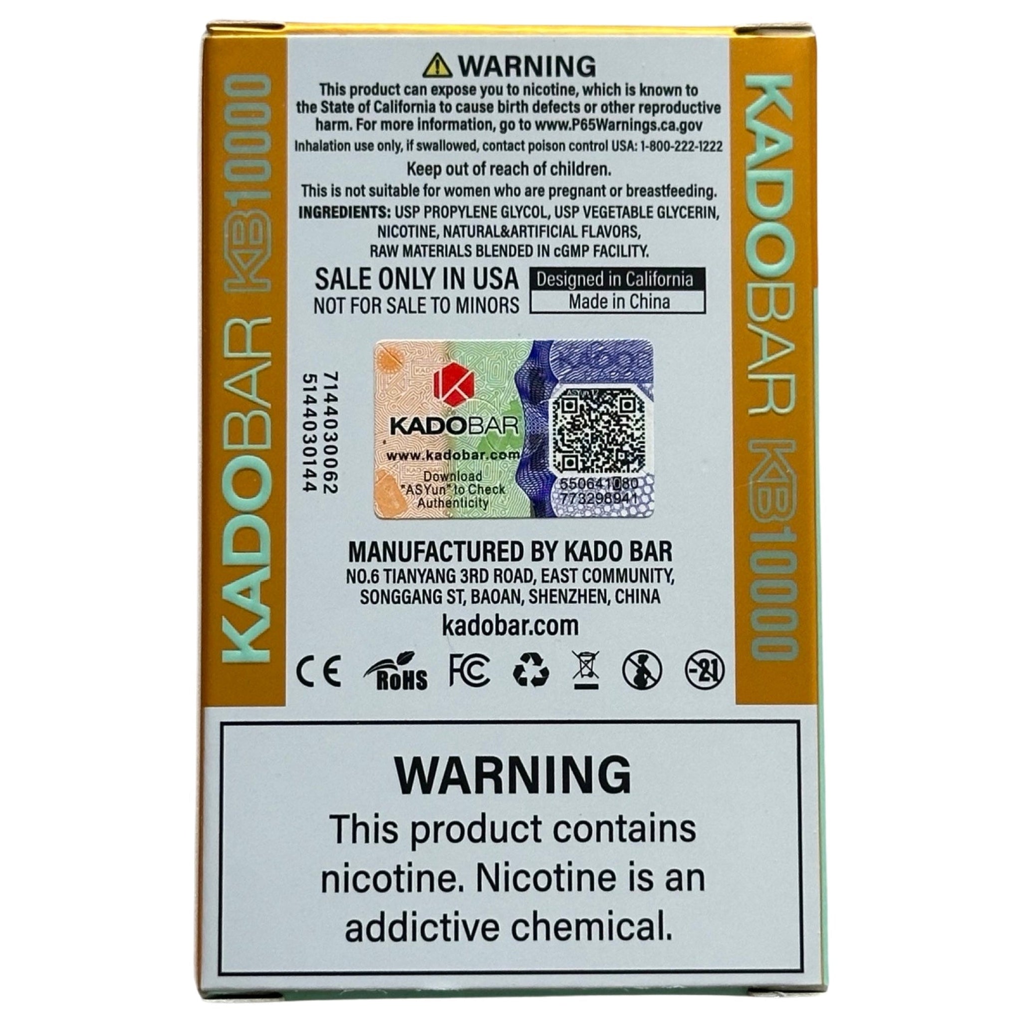 With a 5% nicotine concentration, the Kado Bar KB10000 provides a satisfying nicotine experience that complements the candy-like flavor of Gummy Bear. This level is ideal for vapers seeking a noticeable yet balanced nicotine hit.