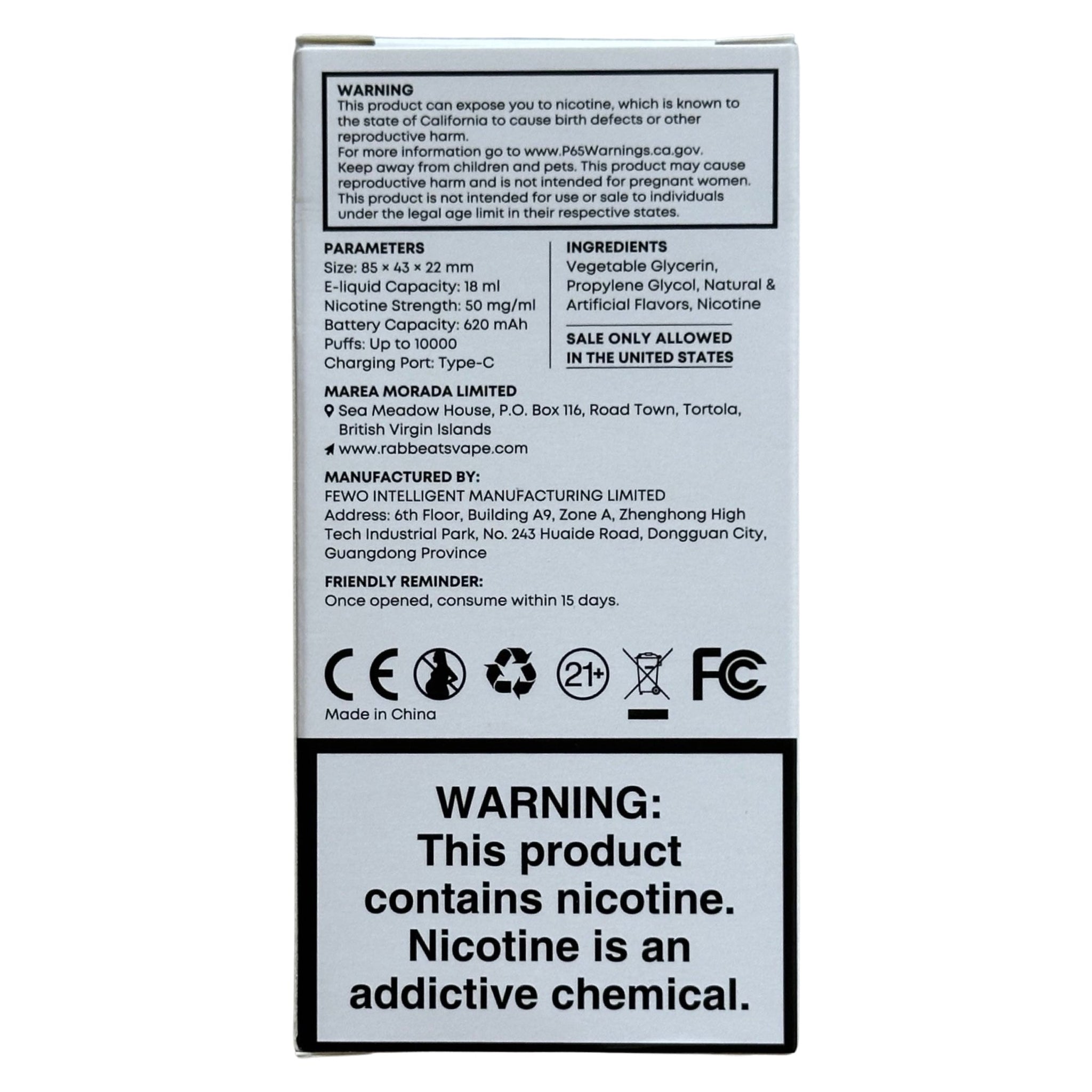 This disposable vape is a masterpiece in both taste and aesthetics. The sleek exterior, adorned with vibrant tropical motifs, mirrors the luscious blend of flavors. Holding the RabBeats RC10000 is not just having a vape; it's keeping a statement of style and innovation.