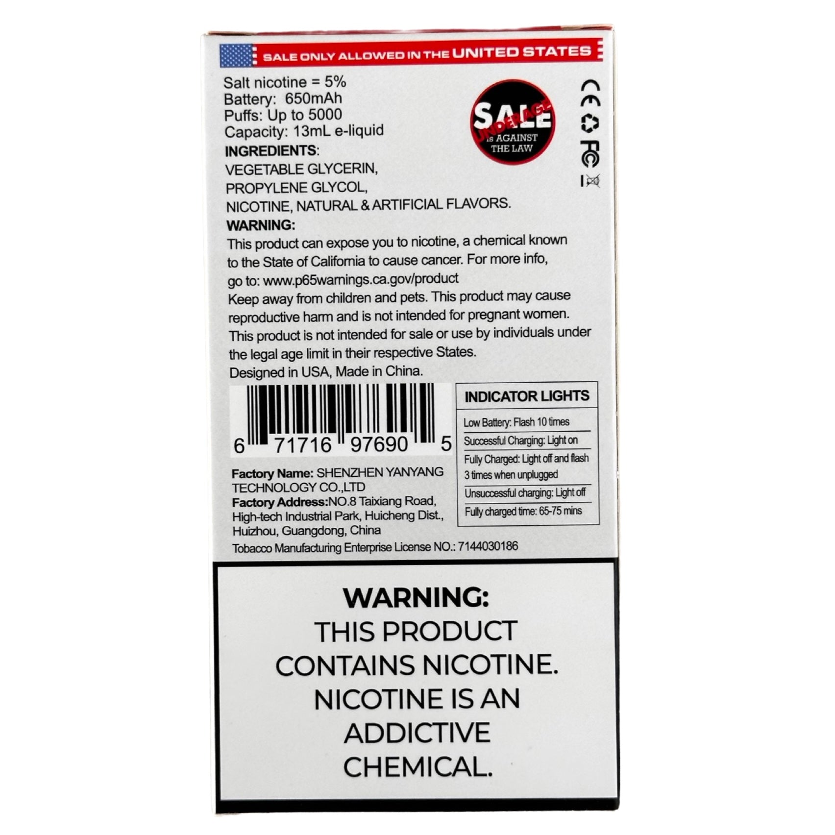 Salt nicotine: 5%