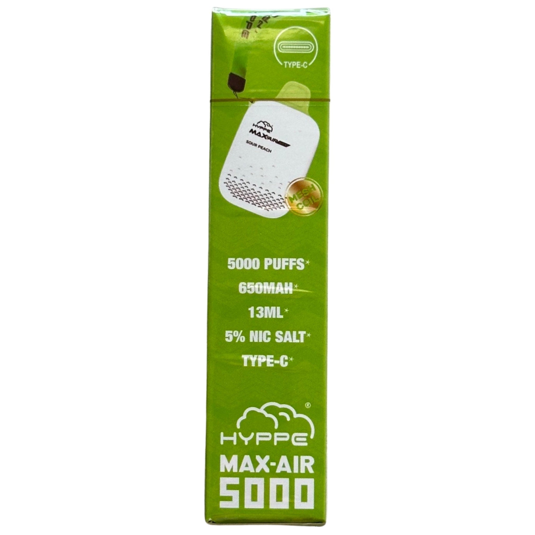 Embark on a taste journey with the Hyppe Max Air 5000 Sour Peach. Picture yourself in a sun-drenched orchard, surrounded by the luscious aroma of perfectly ripe peaches. Now, take a bite. That's the essence of the Sour Peach flavor encapsulated in every puff of Hyppe Max Air.
