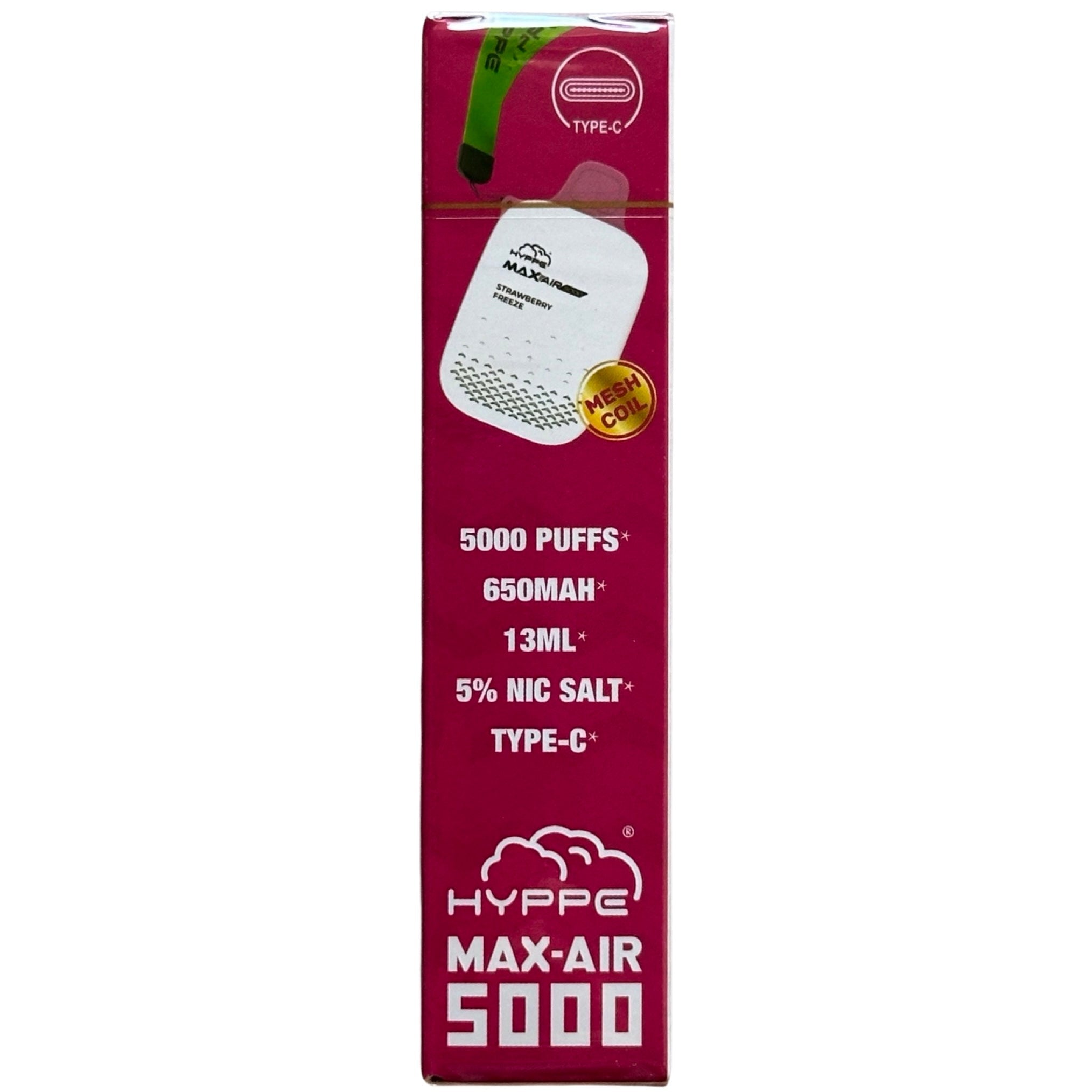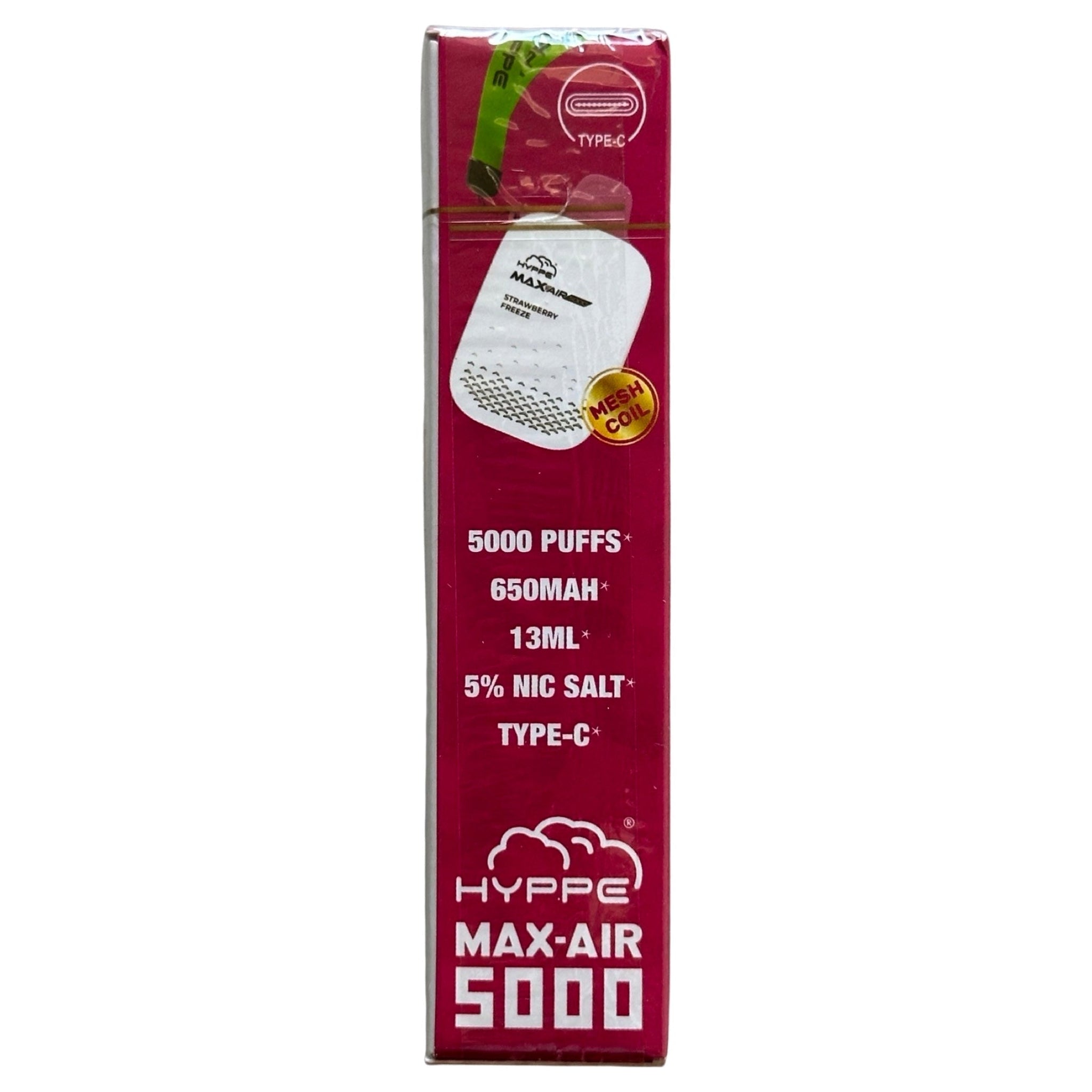 It's like savoring the perfect frozen treat on a hot summer day; only this time, the sensation is encased in a sleek, portable device. Hyppe Max Air 5000 Strawberry Freeze transcends the ordinary, offering an unparalleled flavor experience that resonates with the crispness of winter air. Prepare to be enraptured by the boldness of fruit and the refreshing coolness, making every draw an unforgettable voyage into the heart of a frozen strawberry wonderland.