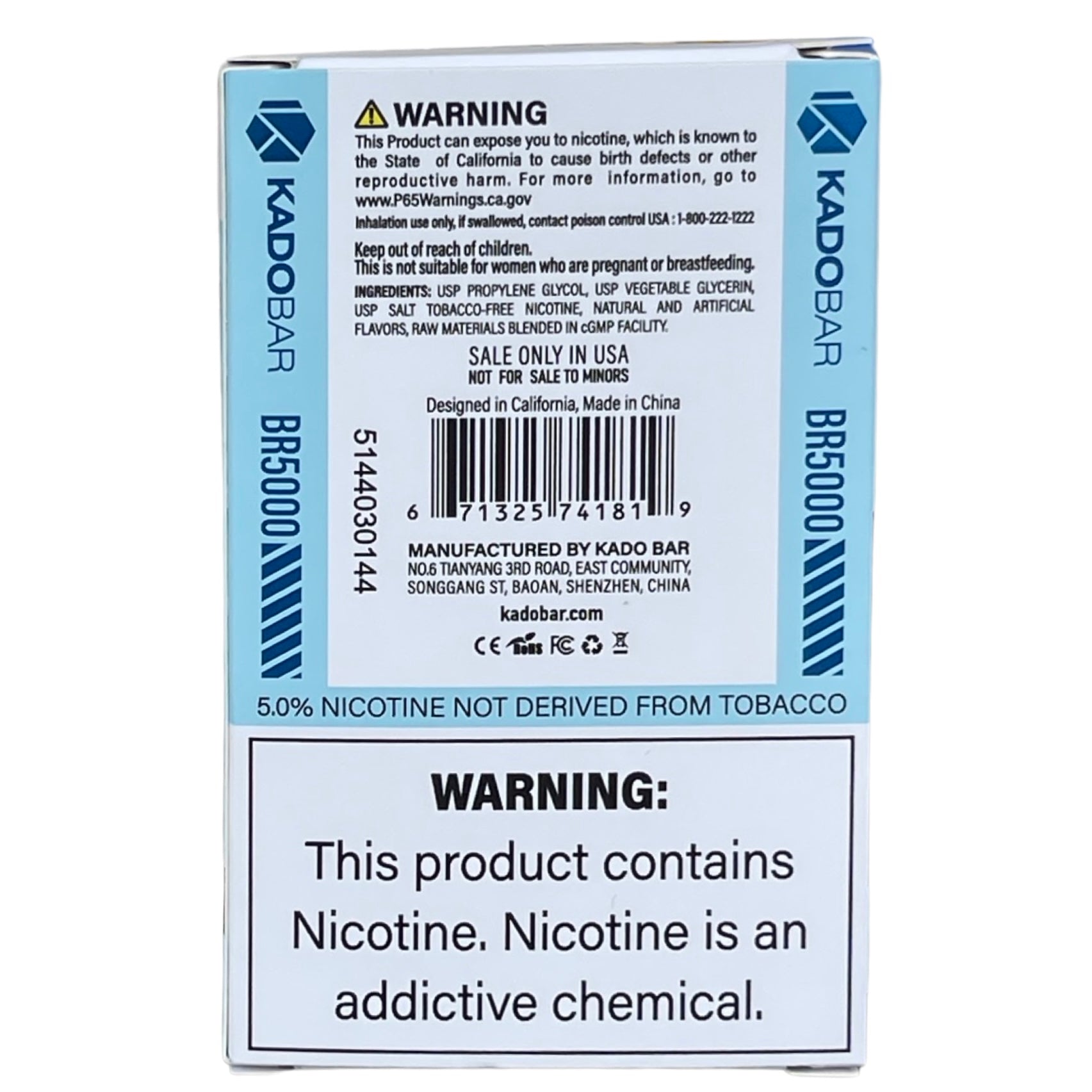 Kado Bar BR5000 Blue Bubblegum, Rechargeable Battery with USB Type-C charging cable included: buy from us!