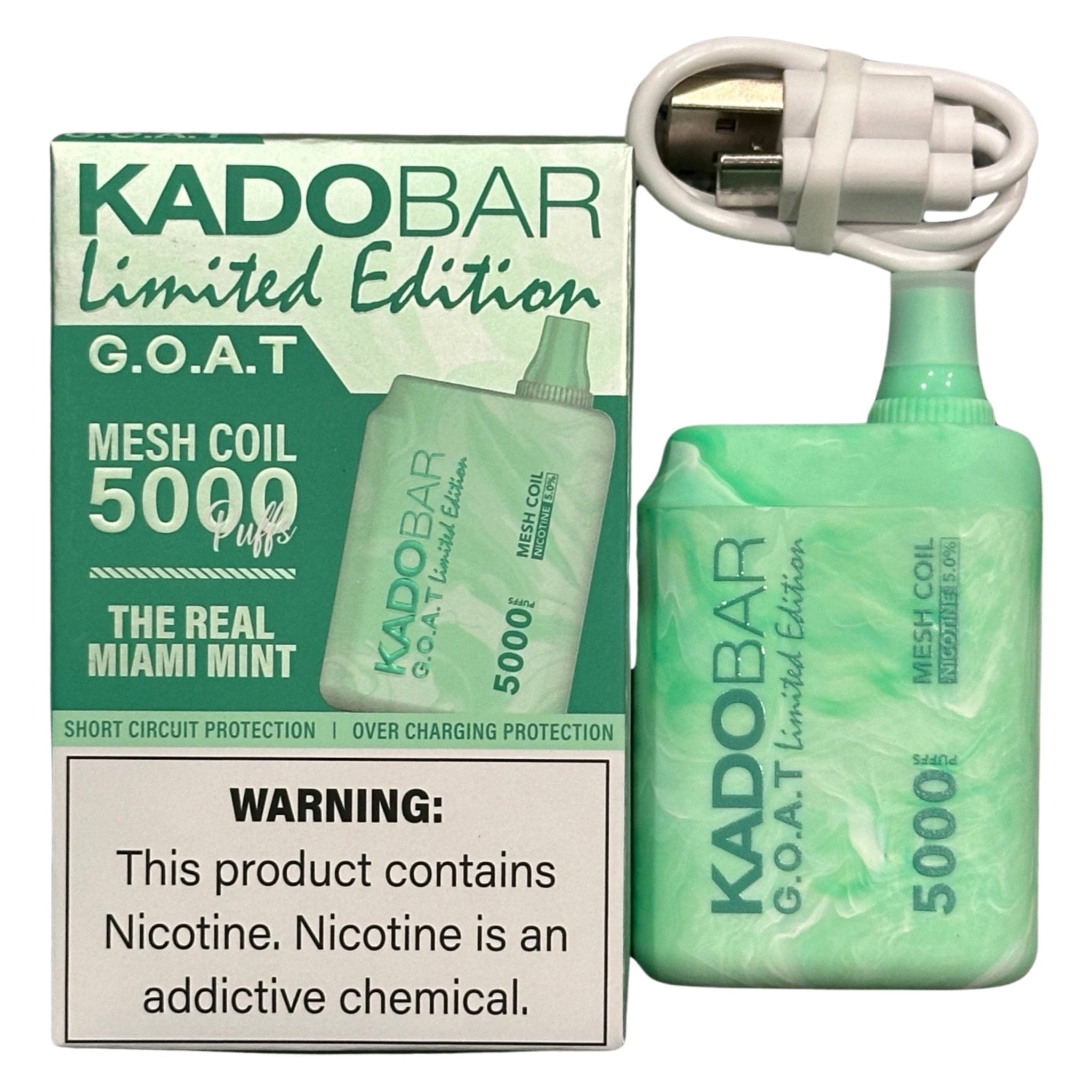 Every Kado Bar vape box, including The Real Miami Mint, comes with a C-type charging cable. This inclusion is not just about convenience; it's about ensuring that your device is always ready for your next adventure, just like the city of Miami itself. The powerful battery, coupled with efficient charging, supports the device's extensive 5000 puff capacity.