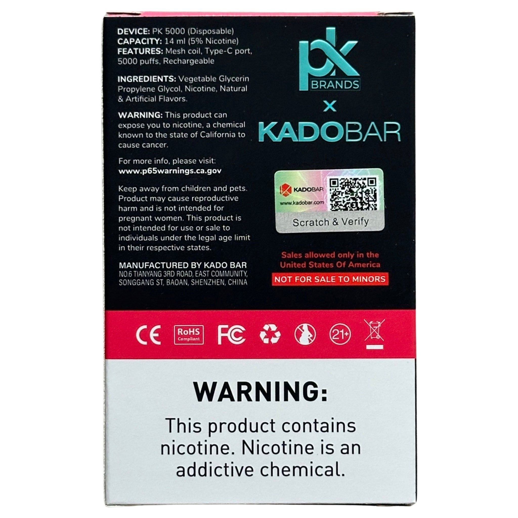 - Convenience Redefined: Say goodbye to bulky mods and messy refills! Kado Bar PK5000 Pom Berry Ice is sleek, compact, and oh-so-easy to use. Pop open the device, take a draw, and revel in the instant gratification of smooth, flavorful vapor. It's vaping made effortless.