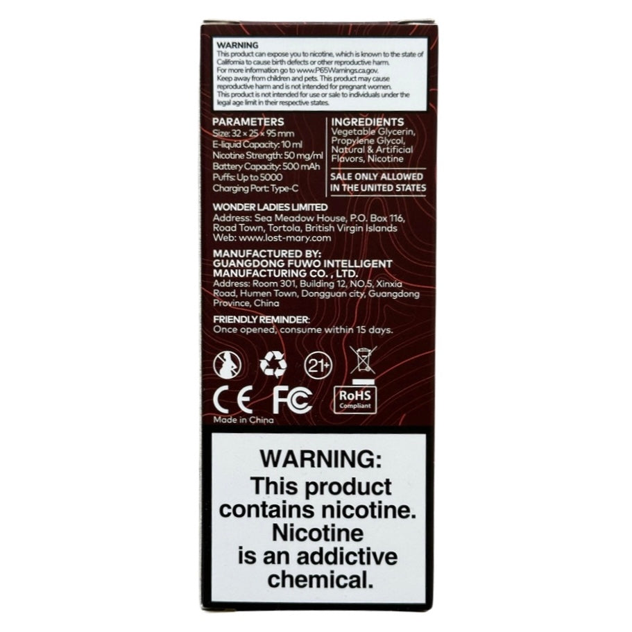 Beyond its gustatory prowess, the MO5000 is a testament to refined design. Its slender silhouette, adorned with the iconic Lost Mary insignia, exudes a sense of class and sophistication, making it the go-to choice for those with a discerning eye for style.