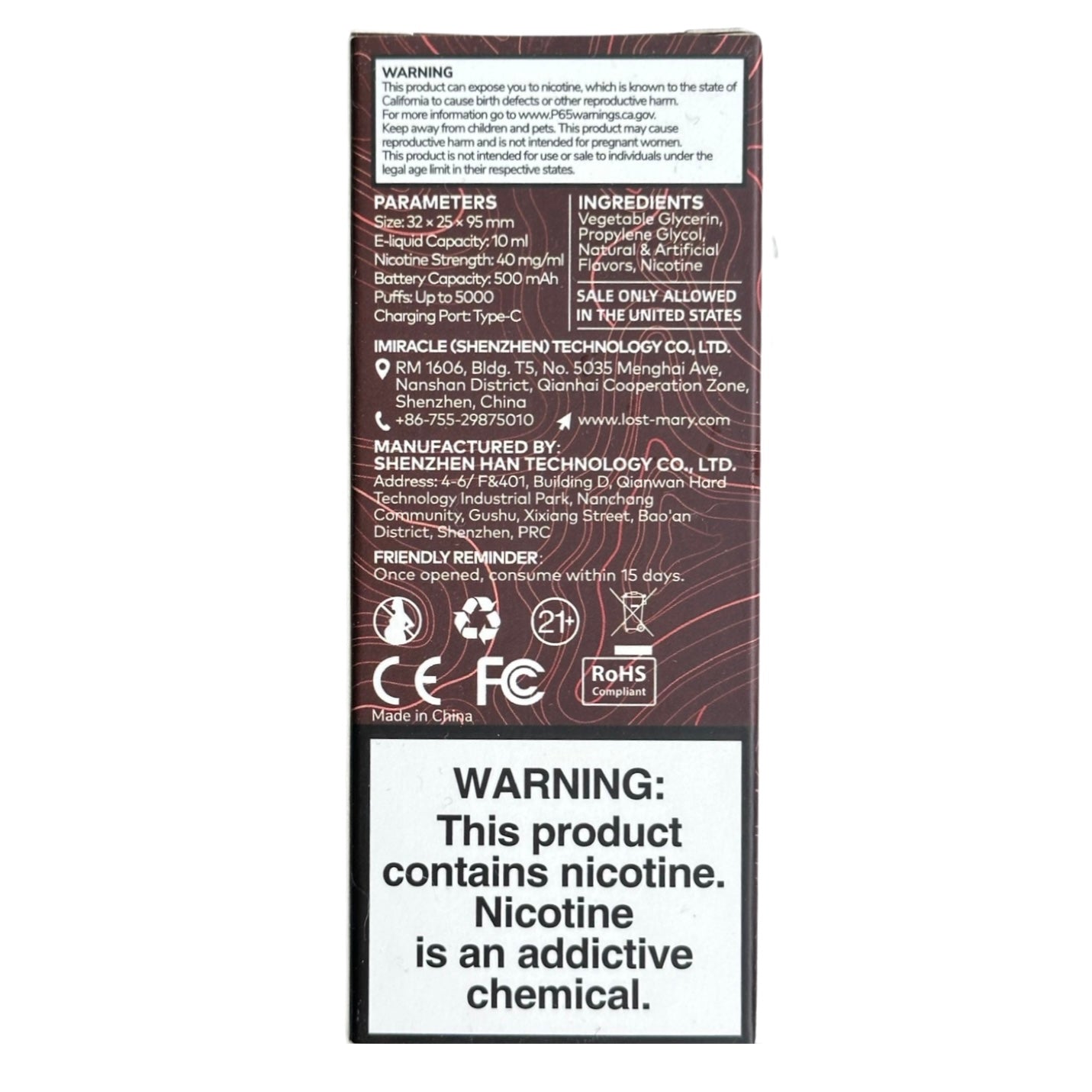 For vapers who prefer nicotine-infused e-liquids, Lost Mary MO5000 Triple Berry Ice provides a range of nicotine strength options to cater to diverse preferences. Whether you seek a mild nicotine hit or a more robust experience, there's a choice to suit your vaping style.