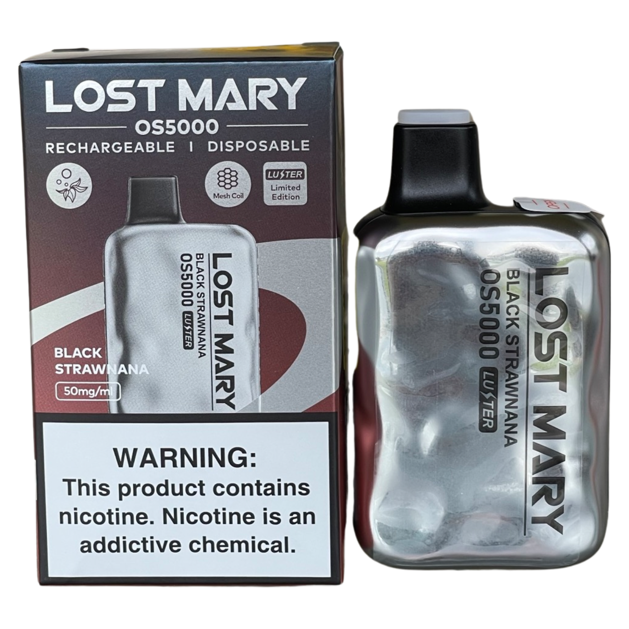 Enthusiasts of exquisite style and design find themselves captivated by the distinctive Black Strawnana Luster Edition model from Lost Mary. The combination of metallic gray and black creates an awe-inspiring aesthetic. Resembling a sleek bottle, the streamlined shape of the Black Strawnana Luster model fits comfortably in your hand. The metallic accents add an extra layer of visual allure. This well-equipped e-cigarette offers the option to recharge the battery, allowing users to continue enjoying the intriguing flavor of the Black Strawnana Luster Edition.