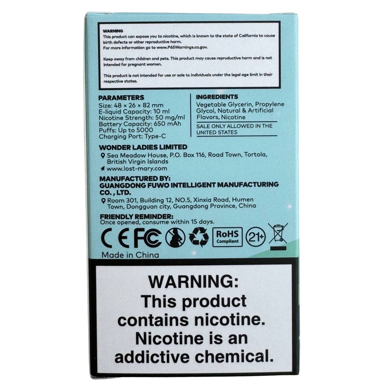 Prepare to be dazzled by the sleek and stylish design of Mad Blue - Lost Mary OS5000. Every detail is designed to turn heads and spark conversation, from its ergonomic shape to its eye-catching color palette. Whether vaping on the go or relaxing at home, Mad Blue is the perfect accessory to complement your style and elevate your vaping experience.