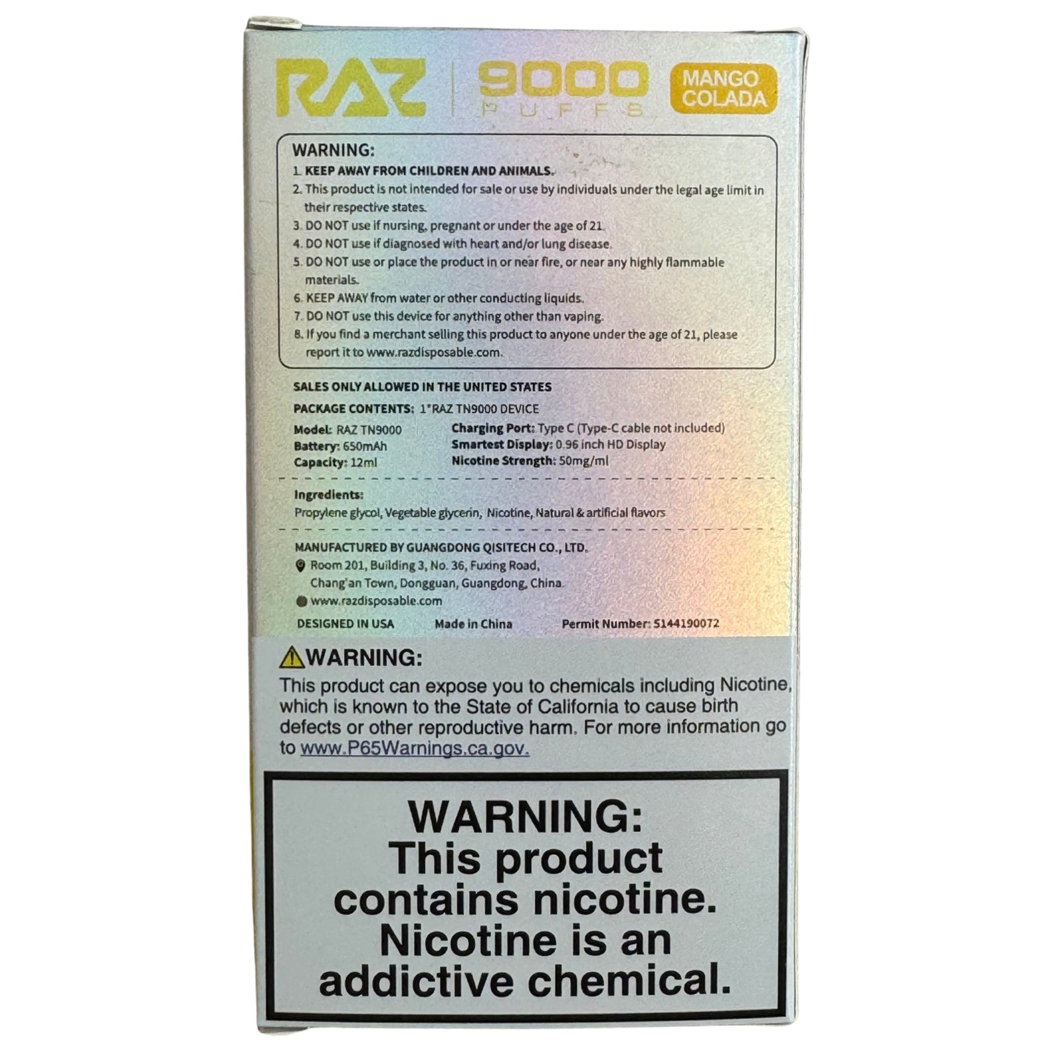 What sets Mango Colada Raz TN9000 apart is its perfect balance of flavors. Each component – from the tangy mango to the creamy coconut – harmonizes effortlessly, creating a symphony of refreshing and satisfying taste. Whether craving a fruity indulgence or a creamy treat, this vape delivers on all fronts, leaving you craving more every exhale.