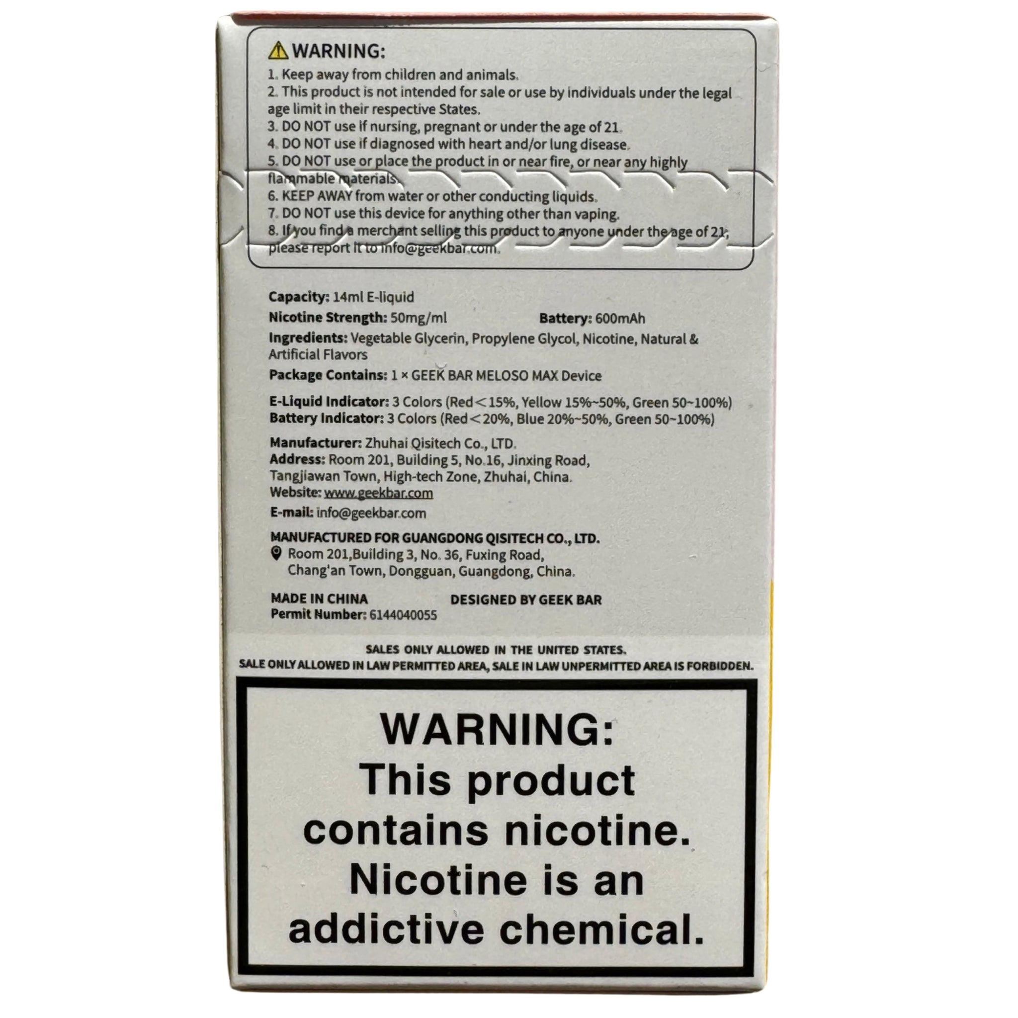 - Sleek Design: Slim, portable, and stylish – the Geek Bar Meloso Max 9000 is a statement accessory.