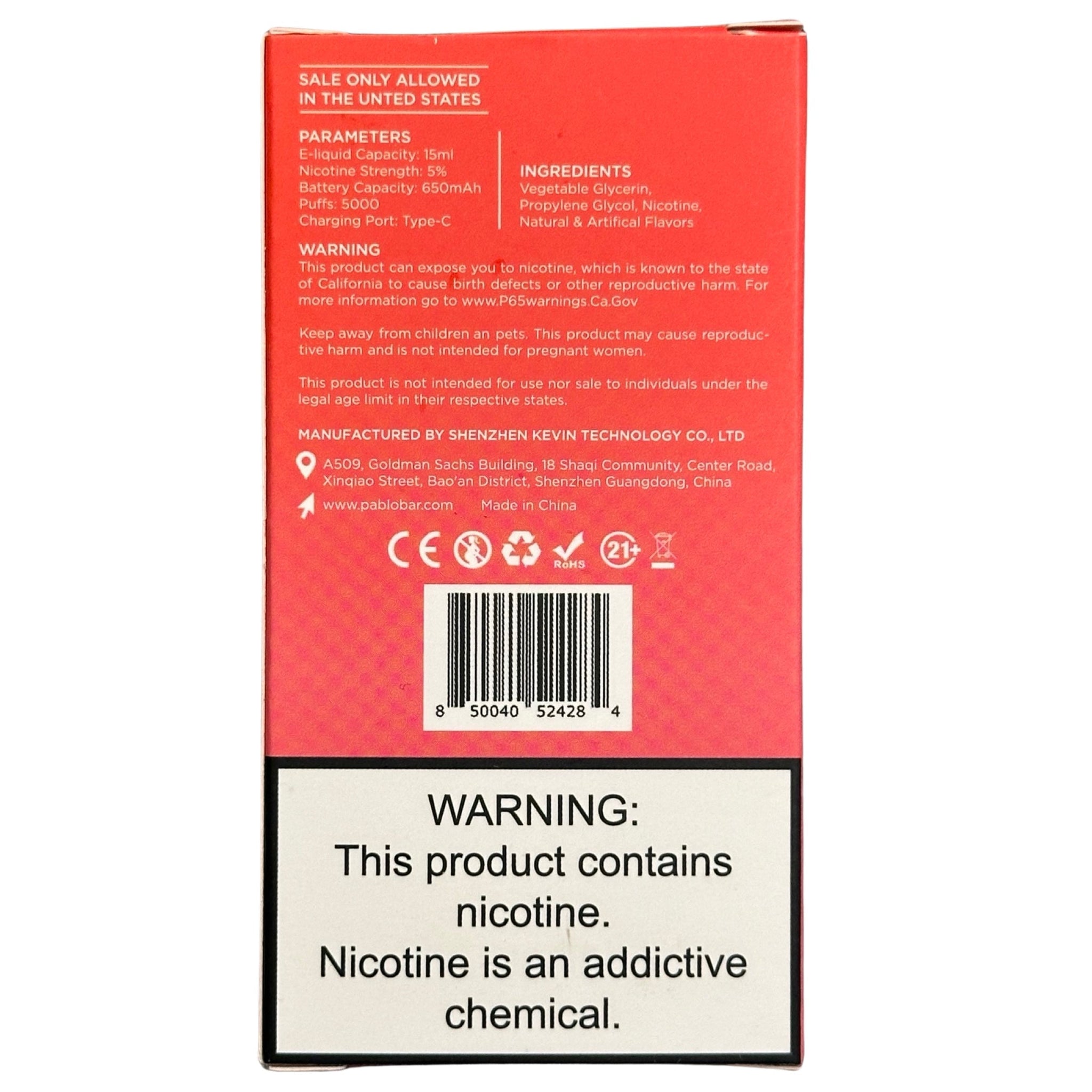 With the inclusion of a USB C-type cable for charging, the Pablo Bar Mini 5000 ensures that your fruity adventure is merely a quick charge away at all times. The rapid and efficient charging process minimizes downtime, assuring that your journey through the delectable trio of cherry, peach, and lemonade is uninterrupted and ever-accessible.