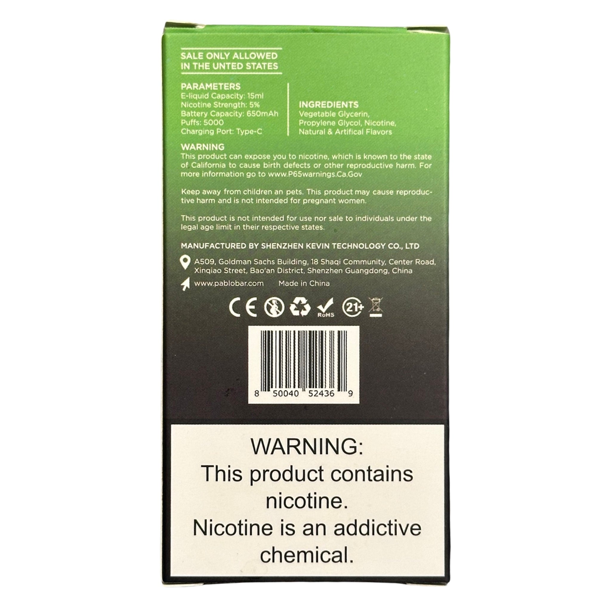 Overall, the Pablo Bar Mini 5000 Energy Drink presents a harmonious blend of spirited flavor, quality craftsmanship, and convenient design, ensuring every puff is a robust and lively experience, encapsulating the essence of your favorite energy drink in a sophisticated, mini vaping device.