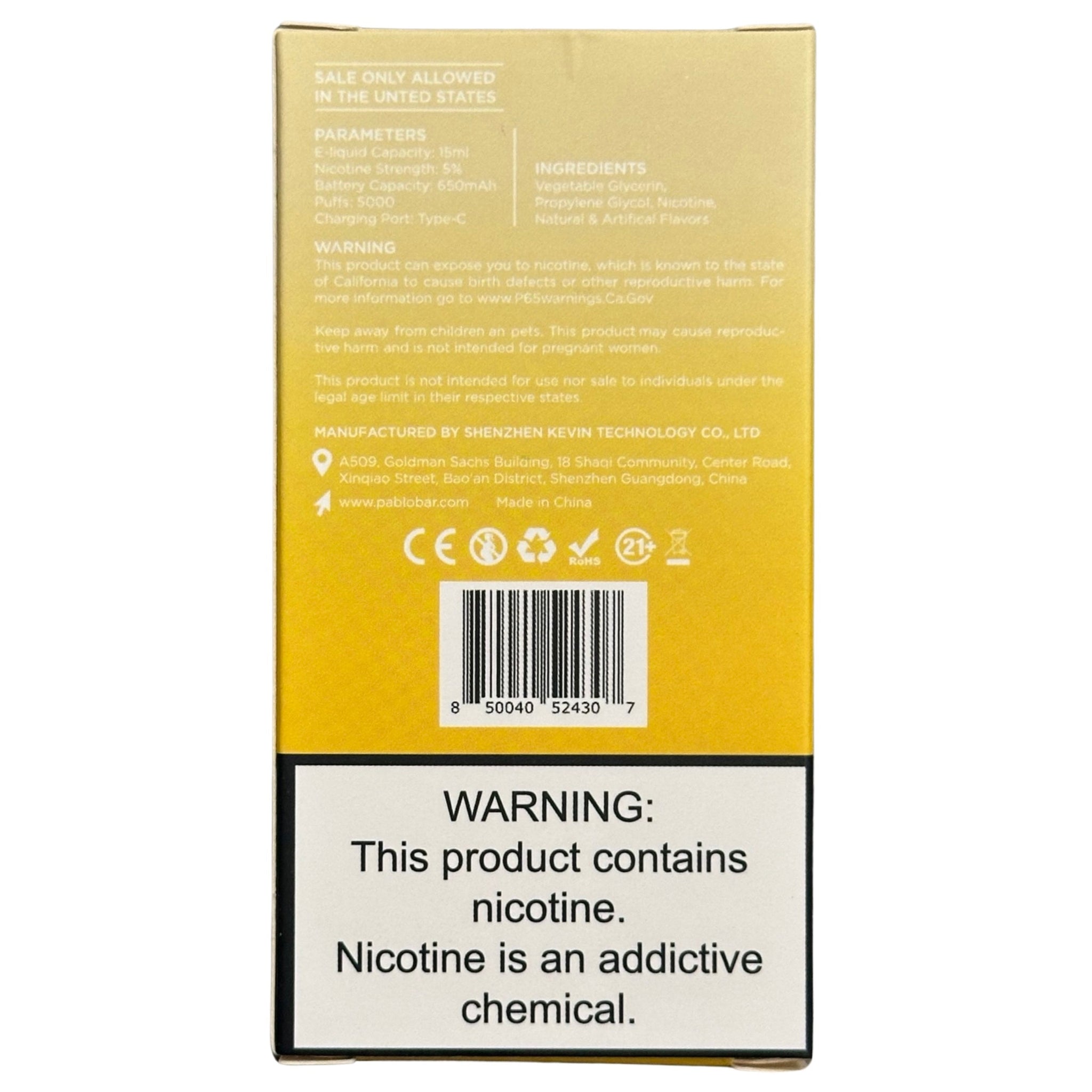 Not to be outshone by its flavor and design, the Pablo Bar Mini 5000 also features rapid and efficient charging through a USB C-type cable. This modern charging solution ensures that you spend less time waiting and more time enjoying your flavorful retreat, making sure that the device is ready to deliver a potent, flavorful vapor whenever you desire.