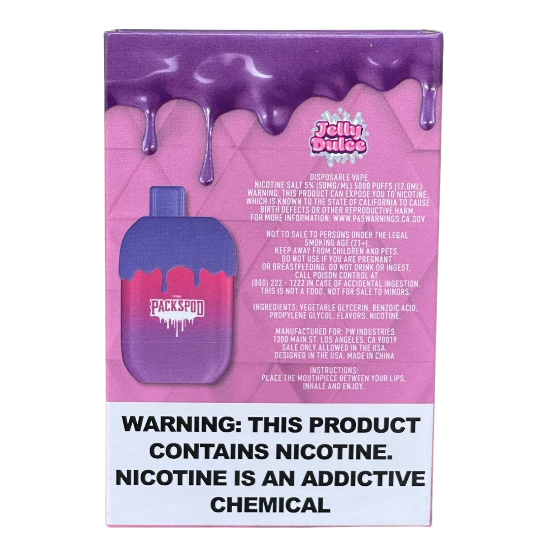 Furthermore, the PacksPod 5000 Jelly Dulce is compatible with a wide range of devices, allowing you to enjoy its delicious flavor on your preferred vaping setup. Whether you have a pod system or a compatible mod, you can easily experience the tantalizing blend of jelly and dulce in all its glory.