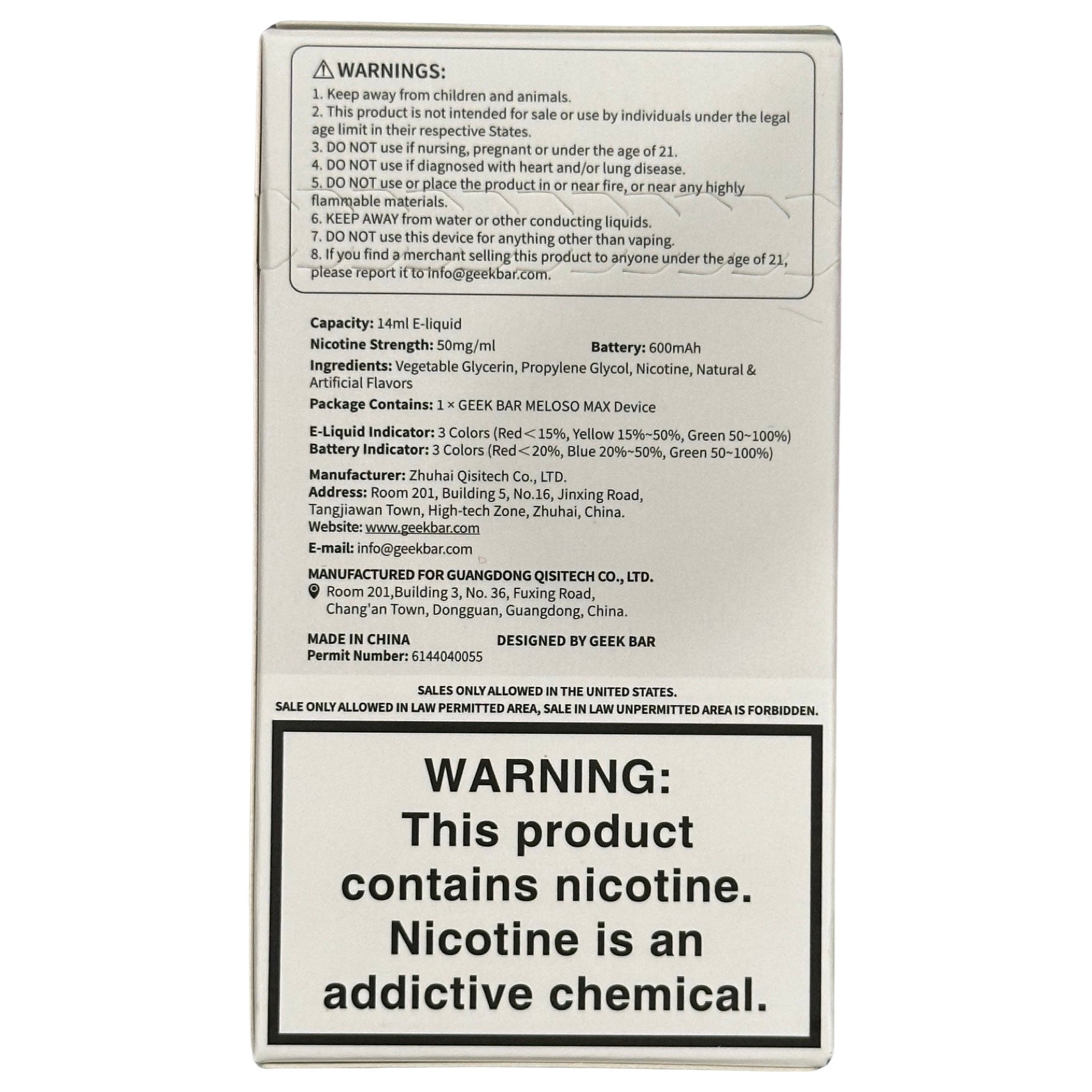 Pre-filled with 14 ml of e-liquid, the Geek Bar Meloso Max 9000 ensures a long-lasting flavor experience. This ample amount of e-liquid guarantees consistent taste and vapor quality over time.