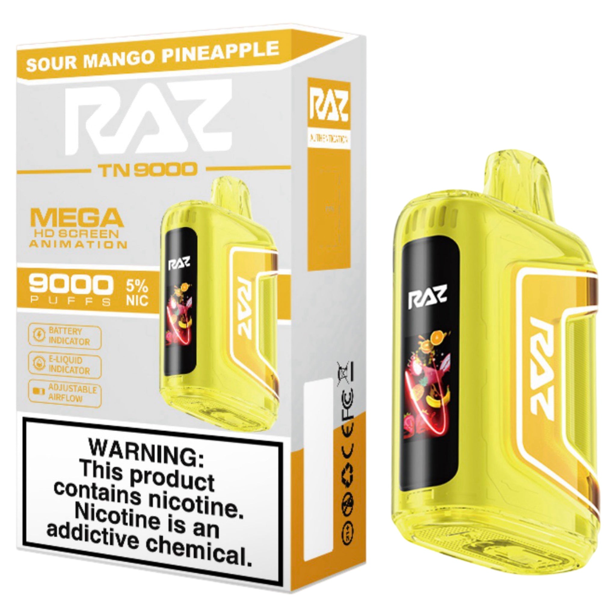 Sour Mango Pineapple - RAZ TN9000 isn't just a vape; it's a tropical escape, a flavor adventure, and a must-have for every vaper seeking excellence. With its irresistible taste, cutting-edge features, and unbeatable value, it's time to elevate your vaping experience with Vapor Puffs. Indulge in paradise today!