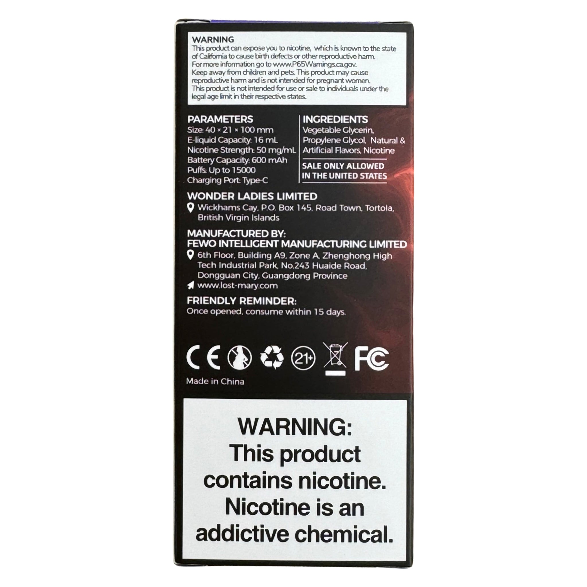 Crafted with care and precision, the e-liquid inside Lost Mary MT15000 Turbo is a carefully curated blend of high-quality ingredients. Each puff delivers a symphony of flavor thanks to the perfect balance of juicy watermelon and icy menthol. With 16ml of liquid goodness and a nicotine level of 50mg, this vape is guaranteed to satisfy your cravings and leave you feeling refreshed.